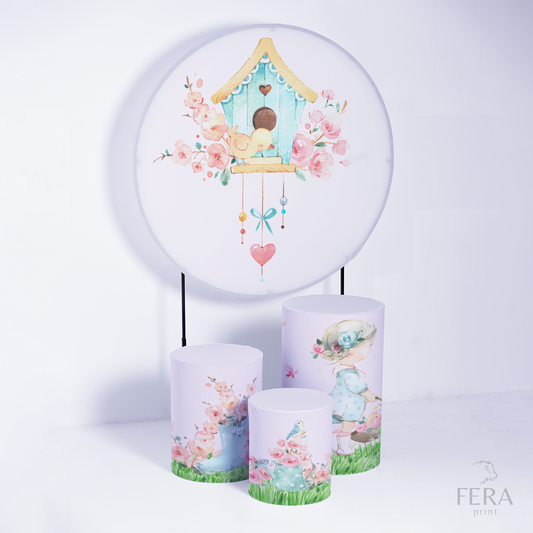 Kit Capa Cilindros + Capa Painel Jardim Encantado Aquarela Sublimado