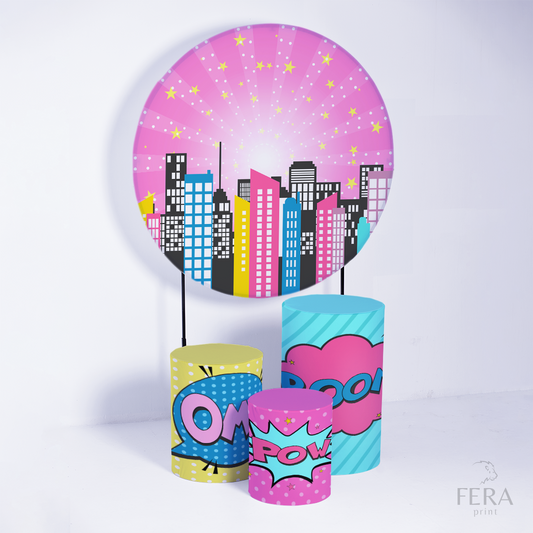 Kit Capa Cilindros + Capa Painel Heróis Rosa Sublimado