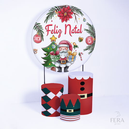 Kit Capa Cilindros + Capa Painel Feliz Natal Sublimado