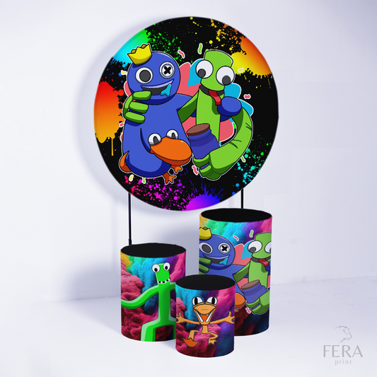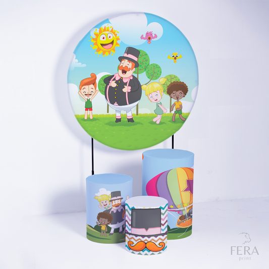 Kit Capa Cilindros + Capa Painel Bonecos Coloridos Sublimado