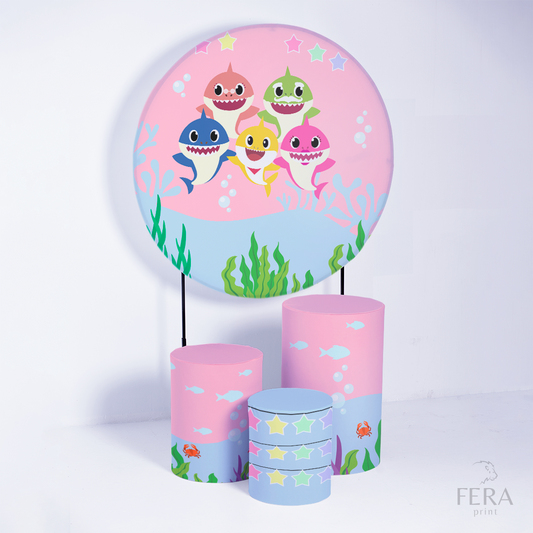 Kit Capa Cilindros + Capa Painel Bebê Tubarão Rosa Sublimado