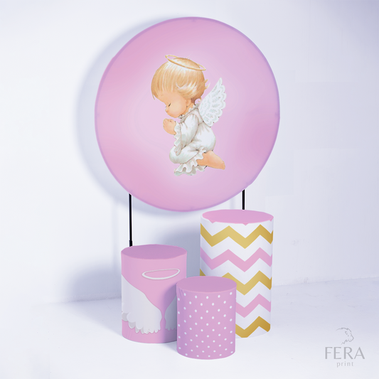 Kit Capa Cilindros + Capa Painel Batizado Rosa Sublimado
