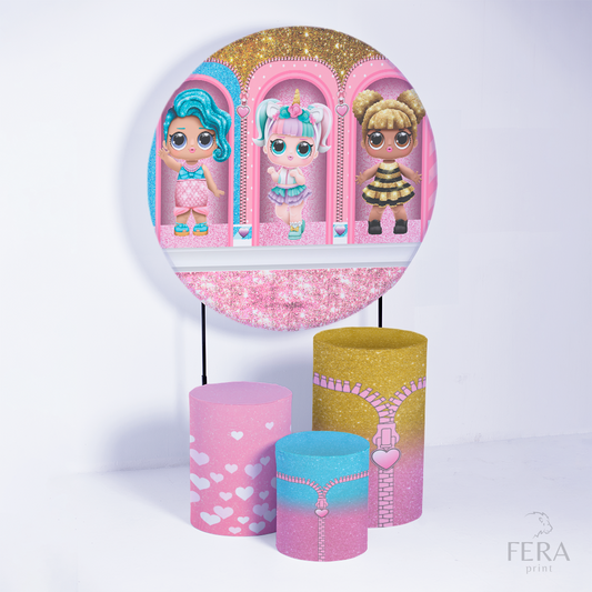 Kit Capa Cilindros + Capa Painel Bonecas Rosa Sublimado