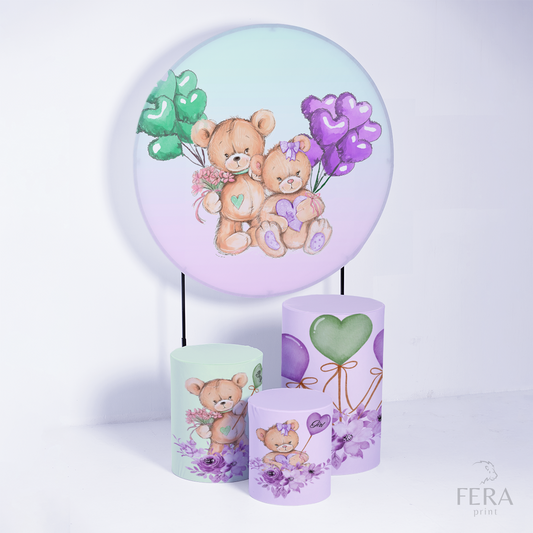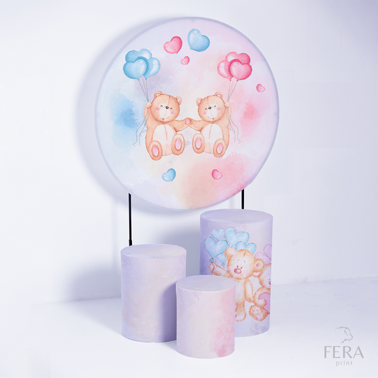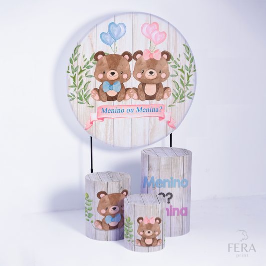 Kit Capa Cilindros + Capa Painel Chá Revelação Ursos Sublimado