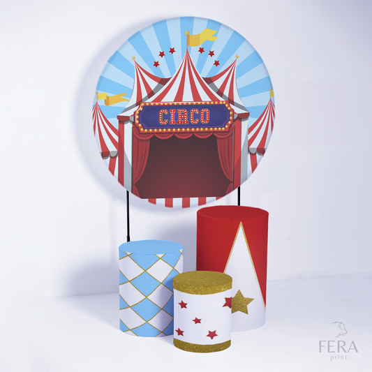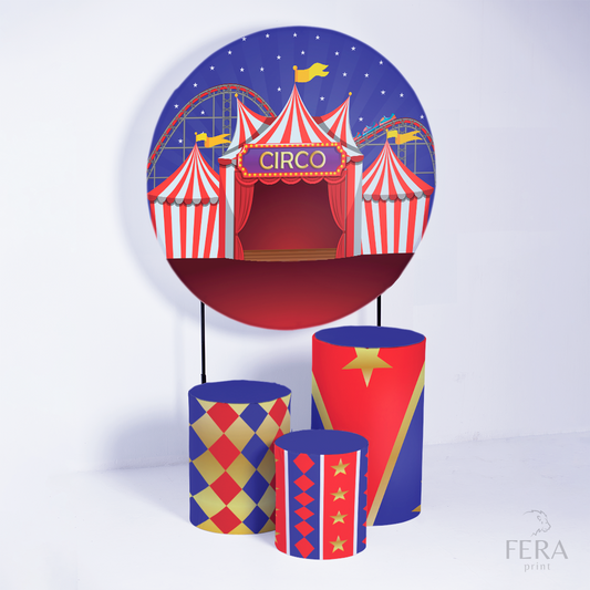 Kit Capa Cilindros + Capa Painel Circo Azul e Vermelho Sublimado