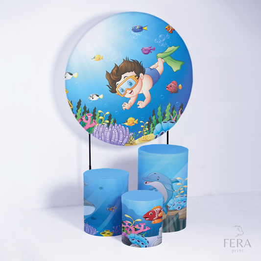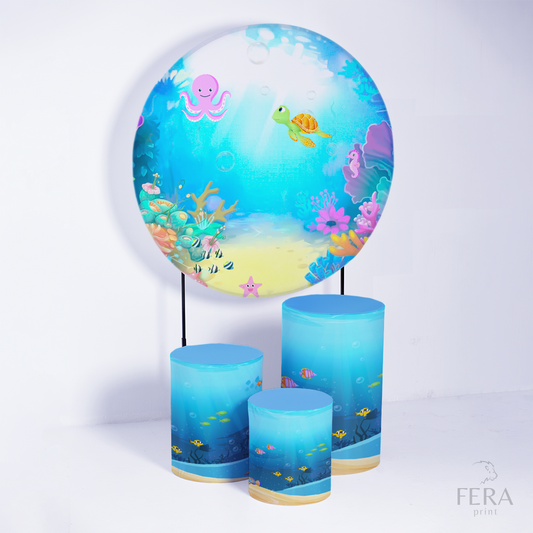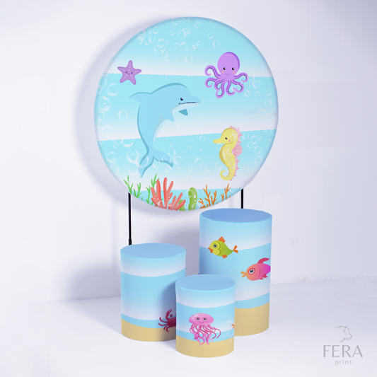 Kit Capa Cilindros + Capa Painel Fundo do Mar Menino Sublimado