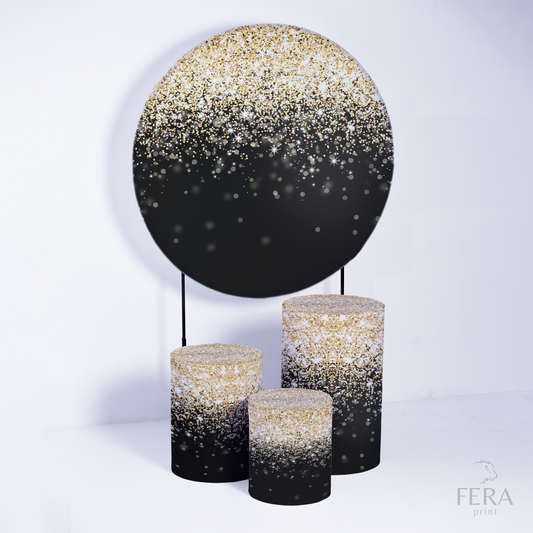 Kit Capa Cilindros + Capa Painel Glitter Chuva Dourada Sublimado
