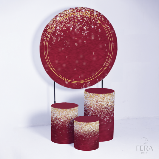 Kit Capa Cilindros + Capa Painel Glitter Bordô Geométrico Sublimado