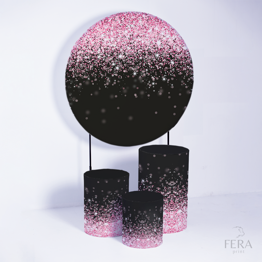 Kit Capa Cilindros + Capa Painel Glitter Preto e Rosa Geométrico Sublimado