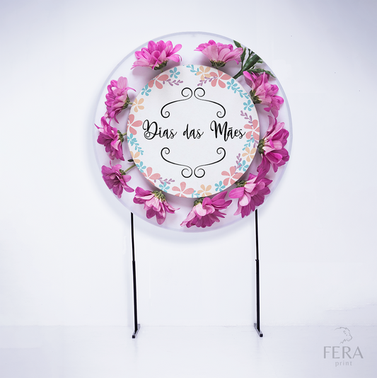 Painel Redondo Dia das Mães Flores Roxas Sublimado