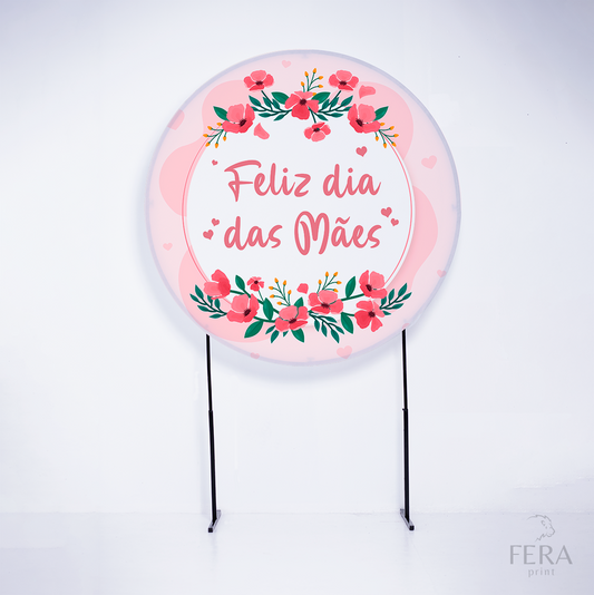 Painel Redondo Dia das Mães Flores Rosas Sublimado