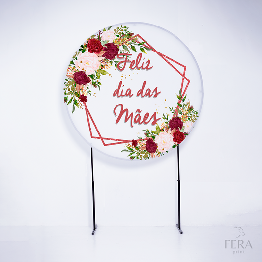 Painel Redondo Dia das Mães Flores Vermelhas Sublimado