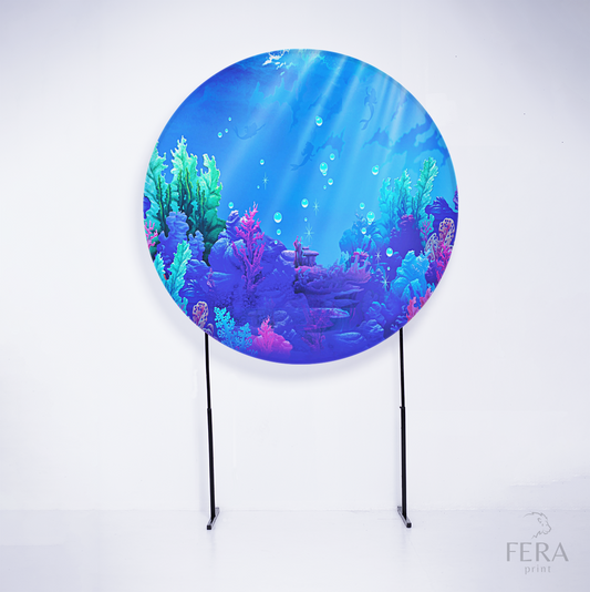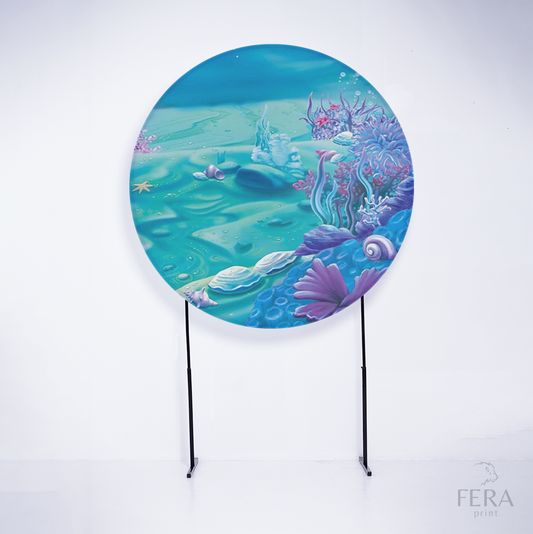 Painel Redondo Fundo do Mar Coral Azul Sublimado