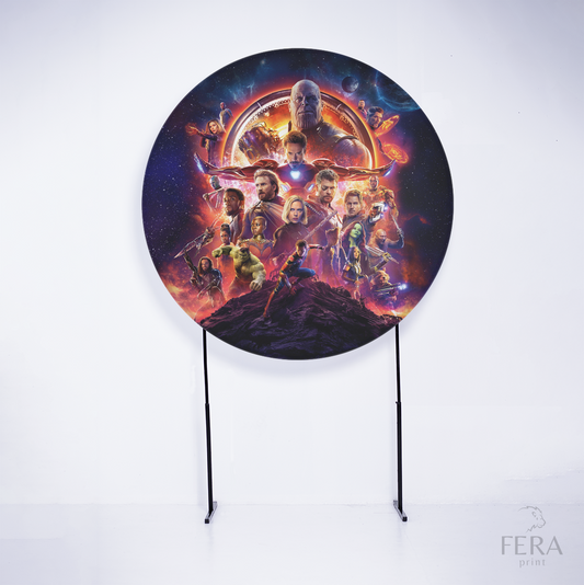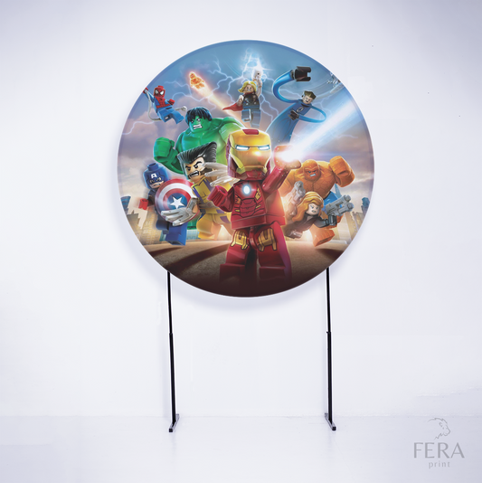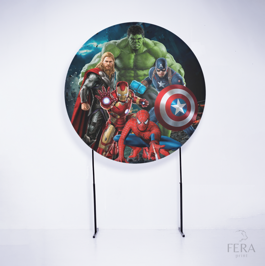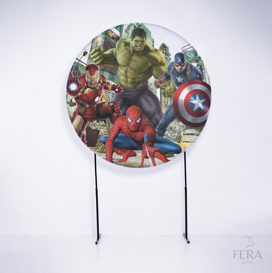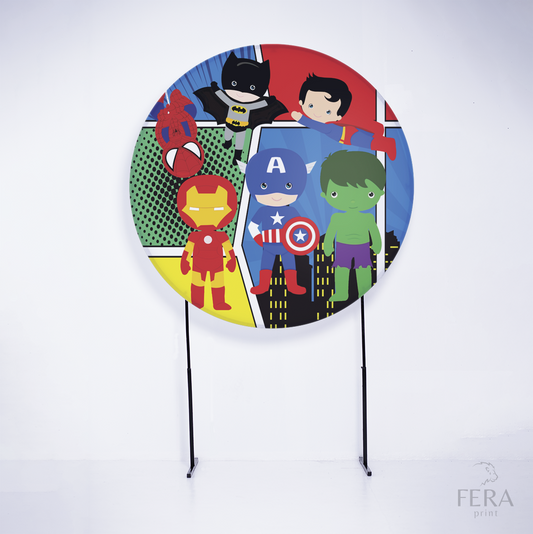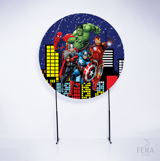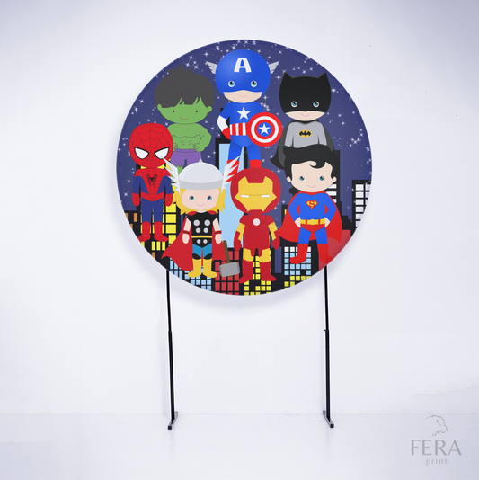 Painel Redondo Heróis Desenho Cidade Sublimado