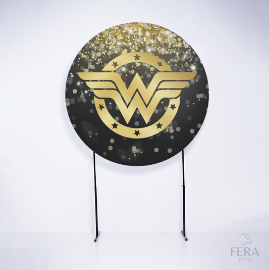 Painel Redondo Heroína Maravilha Dourado Sublimado