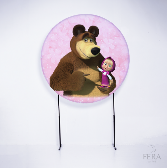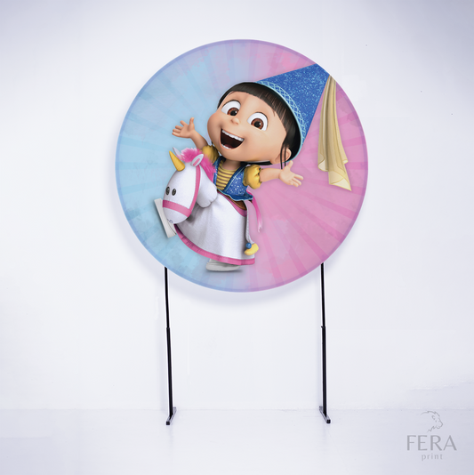 Painel Redondo Menina Fofa Azul e Rosa Sublimado