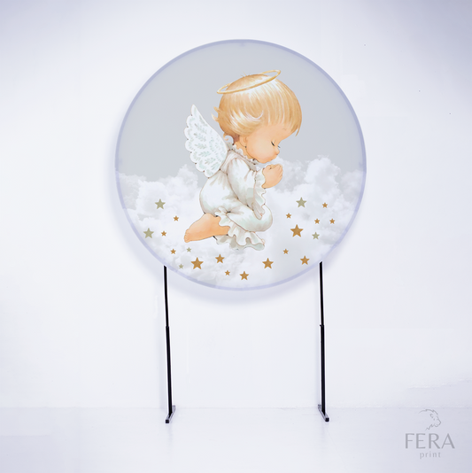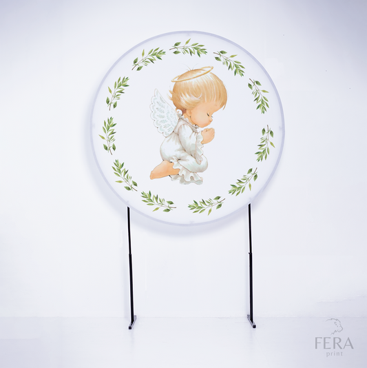 Painel Redondo Batizado Anjinho Branco Sublimado