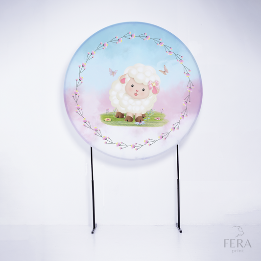 Painel Redondo Ovelhinha Rosa e Azul Sublimado