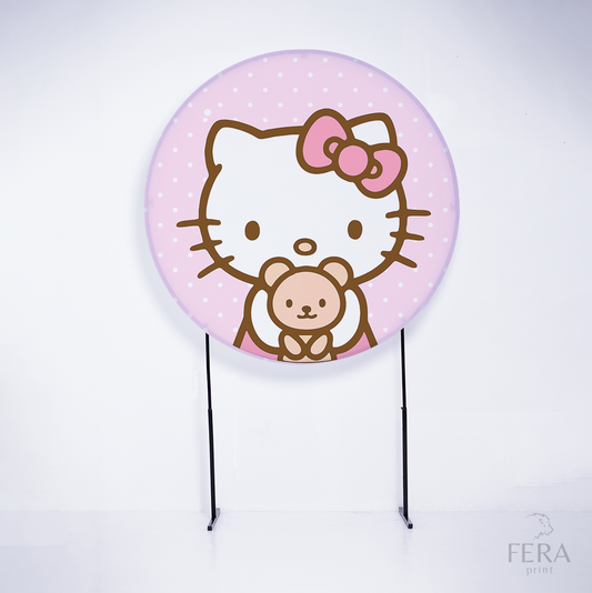 Painel Redondo Oi Gatinha Rosa Sublimado