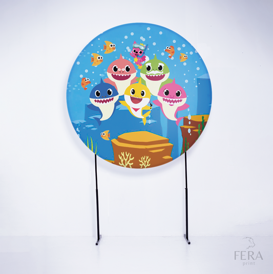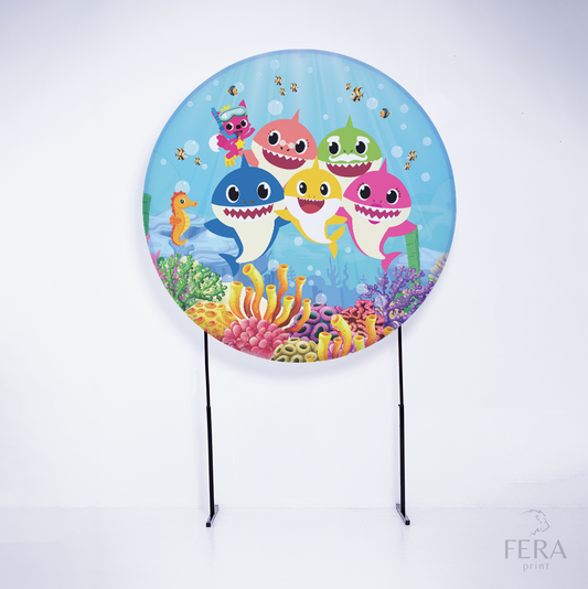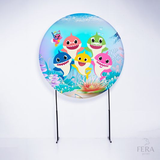 Painel Redondo Bebê Tubarão Family Fundo do Mar Sublimado