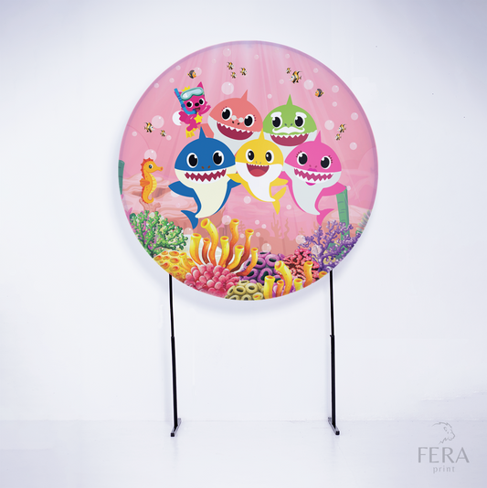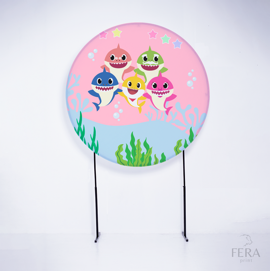Painel Redondo Bebê Tubarão Rosa Sublimado