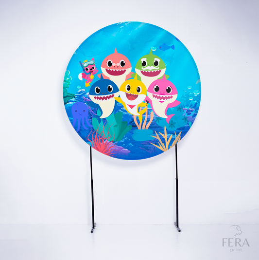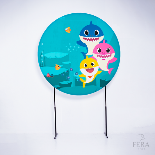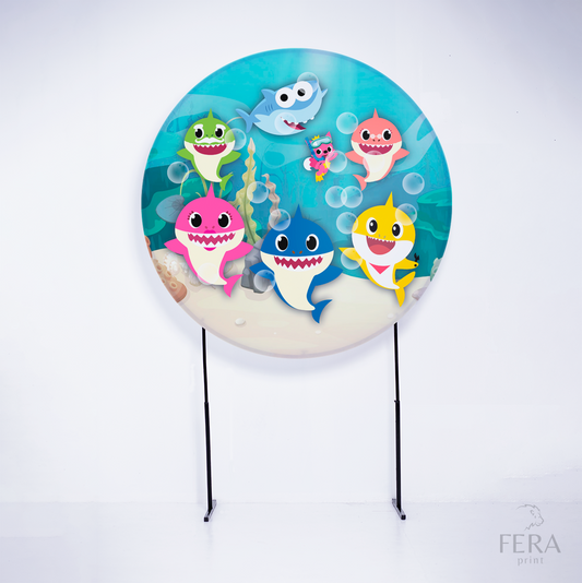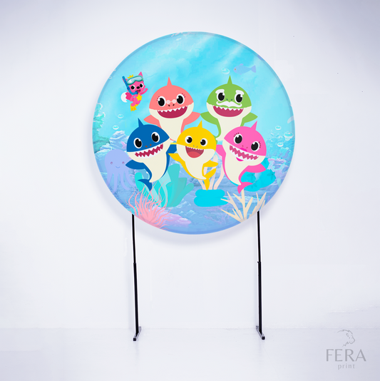 Painel Redondo Bebê Tubarão Family Azul Sublimado
