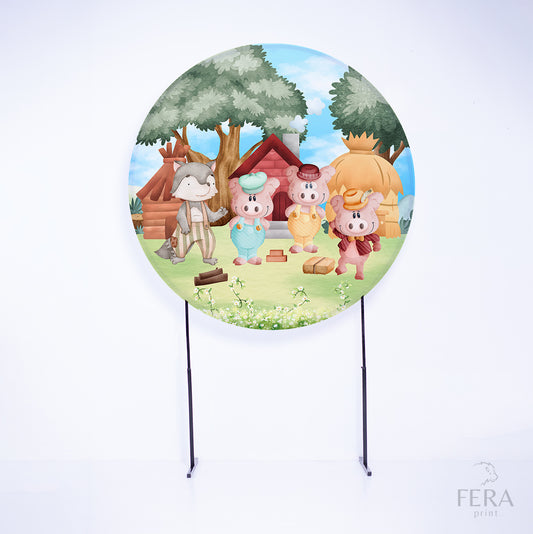 Painel Redondo 3 Porquinhos Azul Sublimado