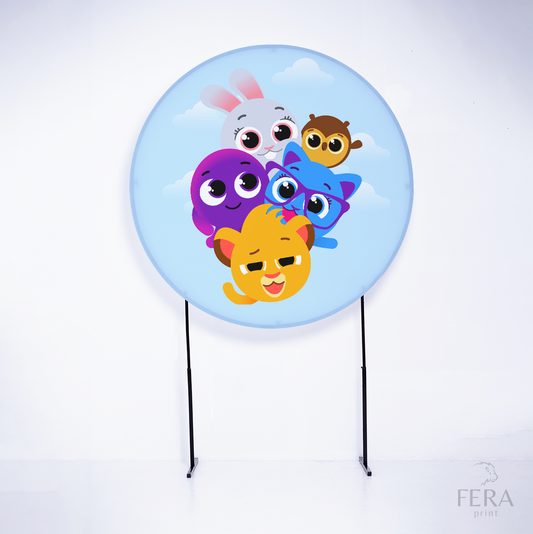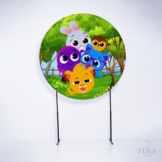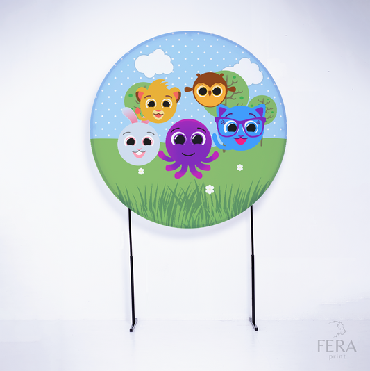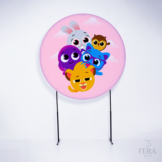 Painel Redondo Bichinhos Fofo Rosa Sublimado