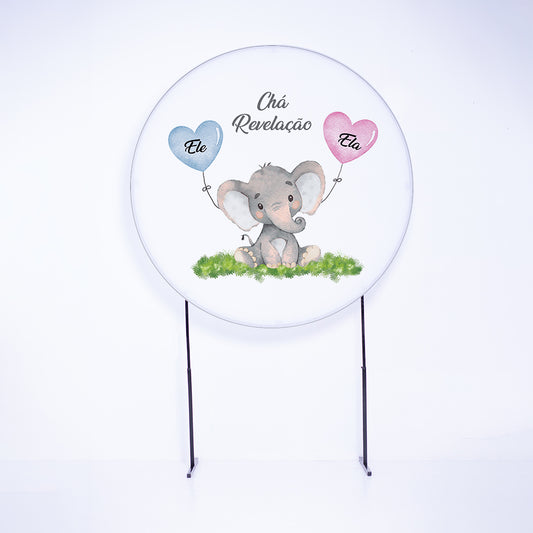 Painel Redondo Chá Revelação Elefantinho Collor Sublimado