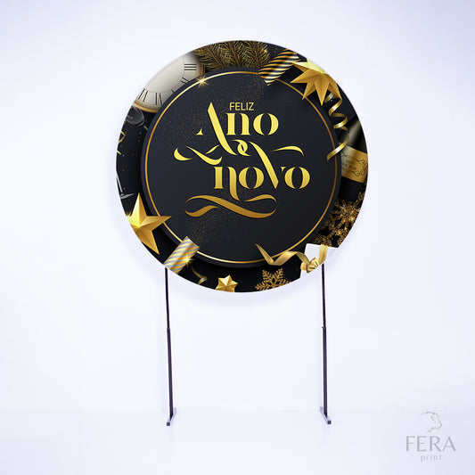 Painel Redondo Ano Novo Preto Sublimado