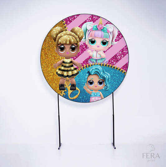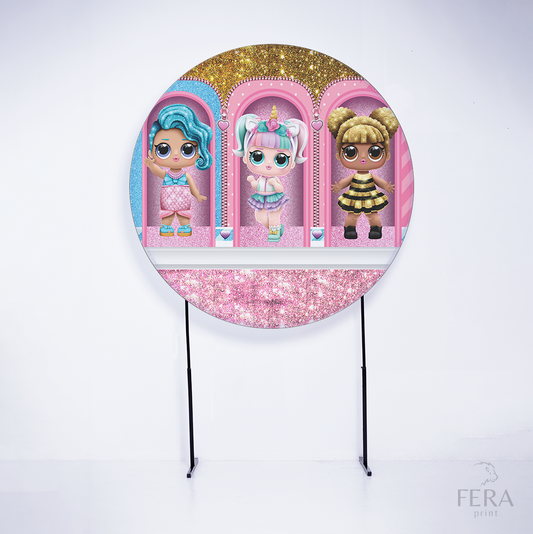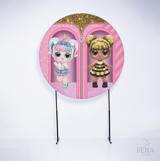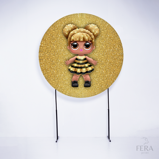 Painel Redondo Boneca Surprise Dourado Sublimado