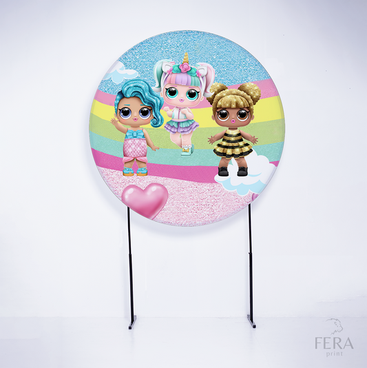 Painel Redondo Boneca Surprise Arco Iris Sublimado