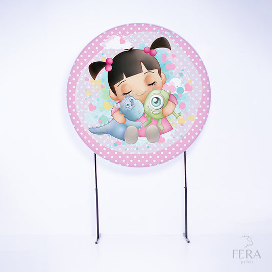 Painel Redondo Menininha Monstros Cute Bolinhas Sublimado
