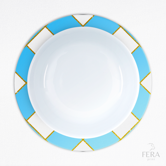 Kit 6 Capas de Sousplat Circo Xadrez Azul Sublimado