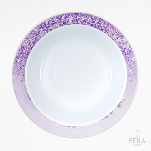 Kit 6 Capas de Sousplat Floral e Glitter Roxo Sublimado