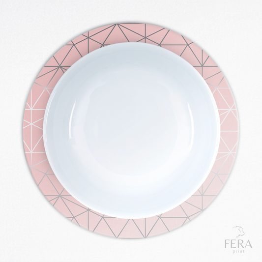 Kit 6 Capas de Sousplat Geométrico Rosa e Prata Sublimado