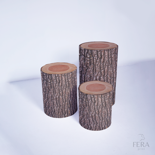 Trio Capa Cilindro Madeira Tronco c/ Elástico