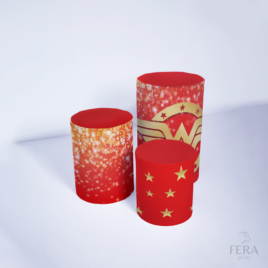 Trio Capa Cilindro Heroína Maravilha Glitter c/ Elástico