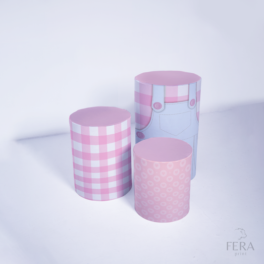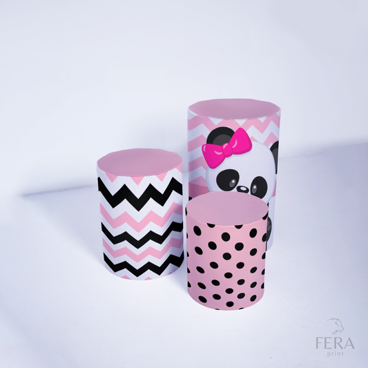 Trio Capa Cilindro Panda Rosa c/ Elástico