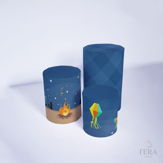 Trio Capa Cilindro O Mió Arraiá Azul c/ Elástico