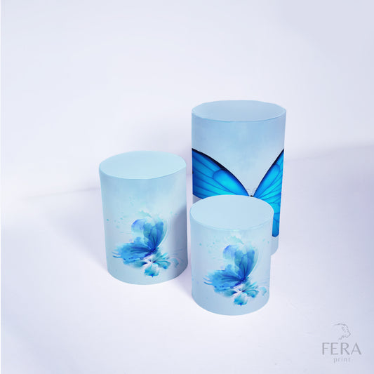 Trio Capa Cilindro Borboleta Azul c/ Elástico