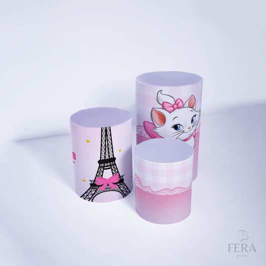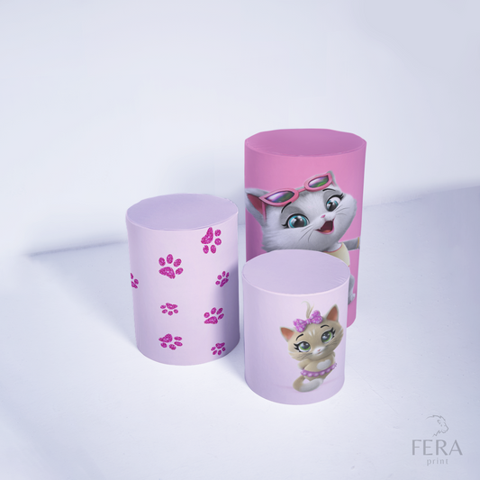Trio Capa Cilindro Gata Rosa c/ Elástico