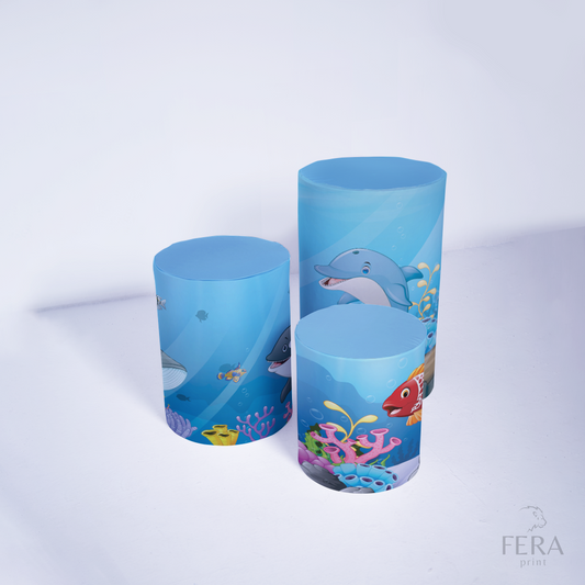 Trio Capa Cilindro Fundo do Mar Golfinho c/ Elástico