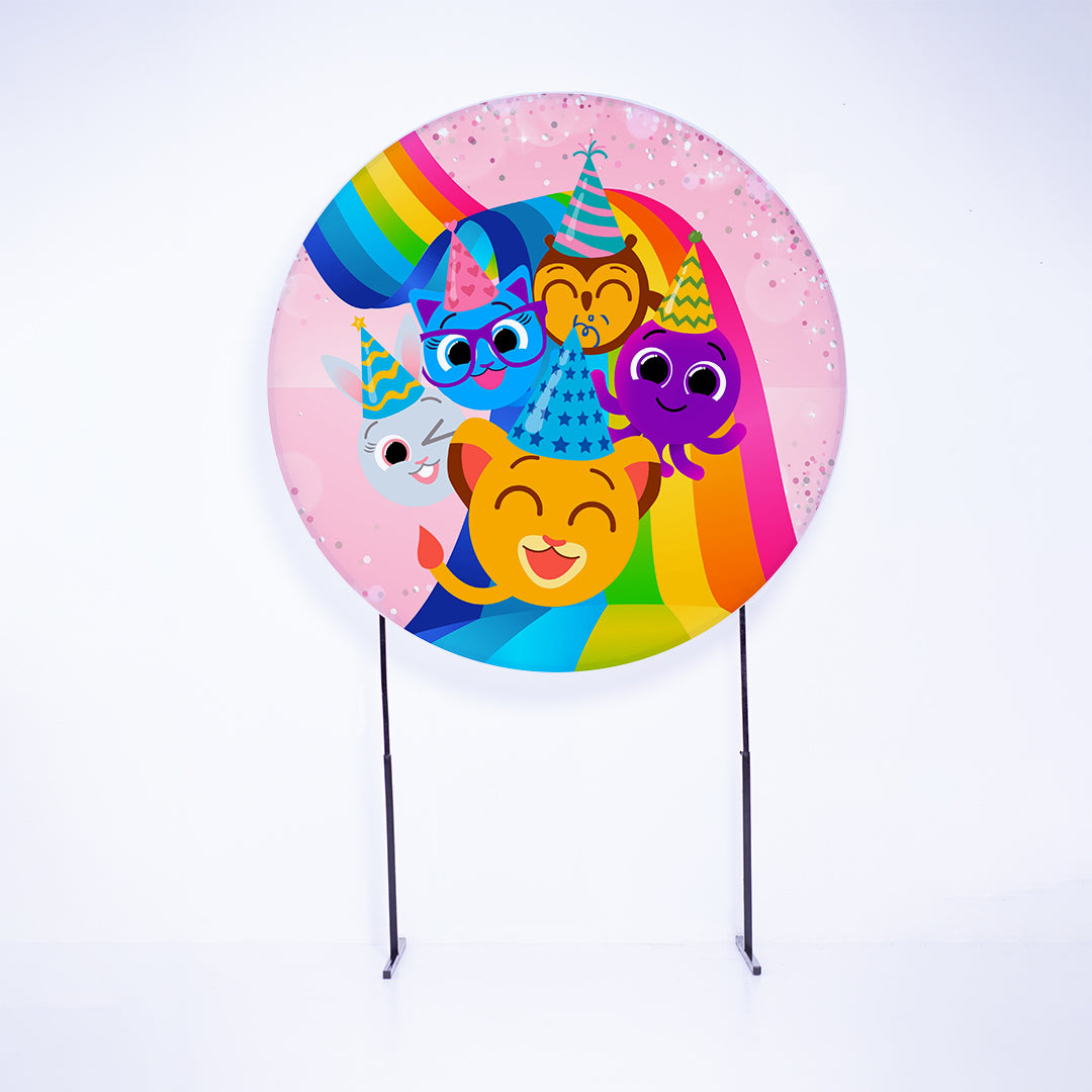 Painel Redondo Bichinhos Fofo Rosa Sublimado