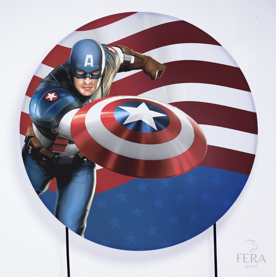 Painel Redondo Herói Americano Bandeira Sublimado
