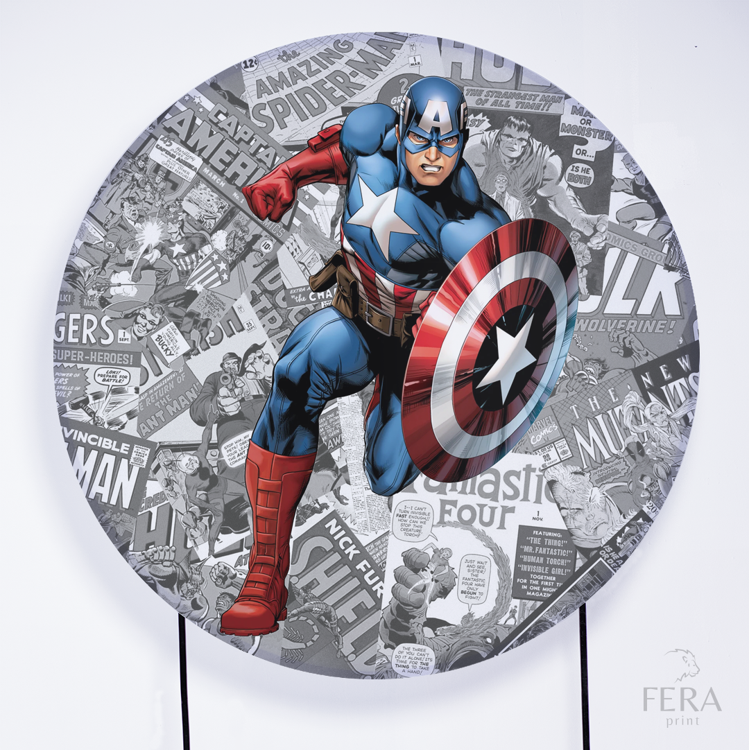 Painel Redondo Herói Americano Desenho Sublimado