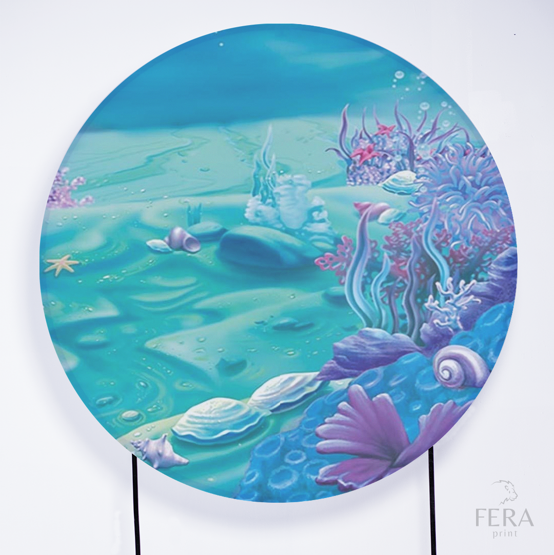 Painel Redondo Fundo do Mar Coral Azul Sublimado