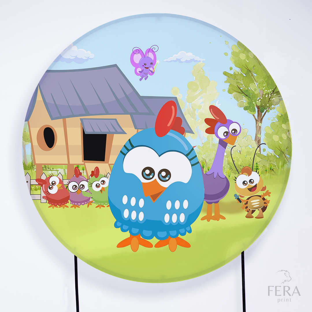 Painel Redondo Galinha Fazenda Sublimado