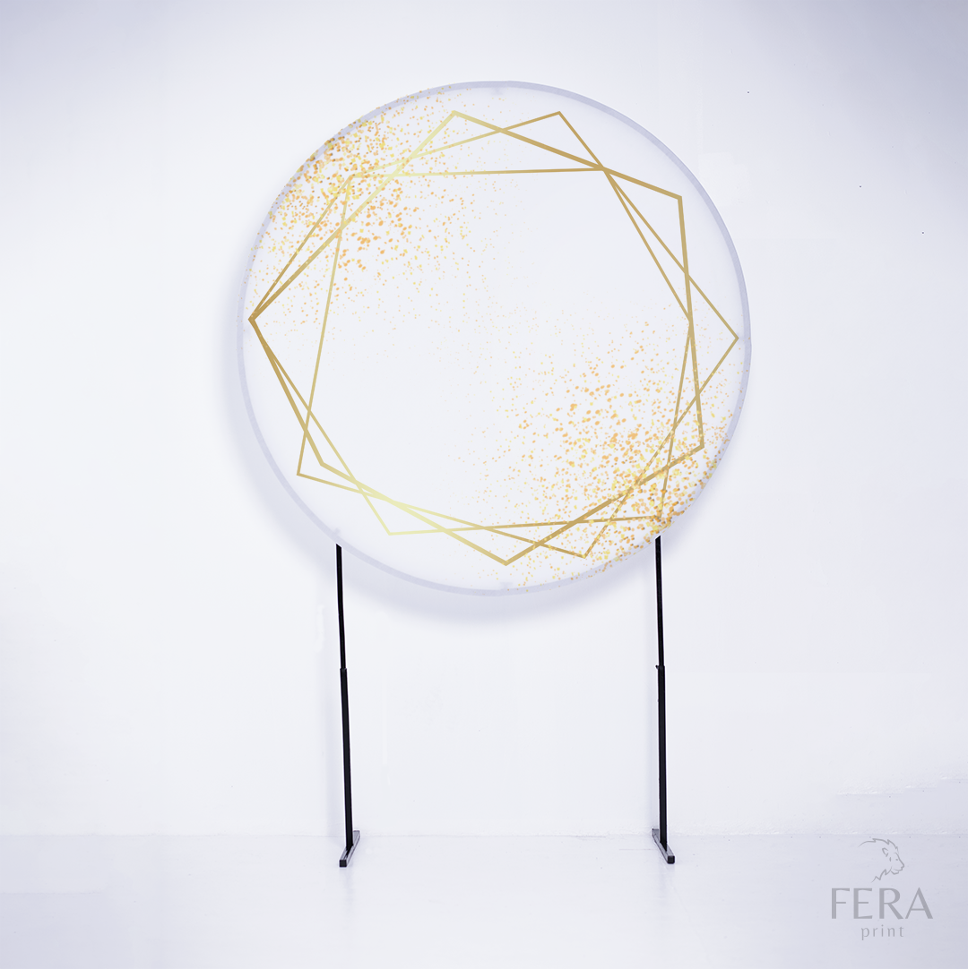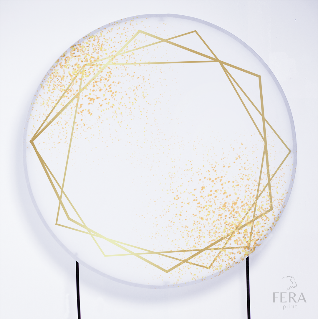 Painel Redondo Geométrico Branco e Dourado Sublimado