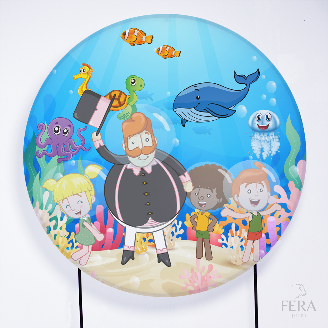 Painel Redondo Mundo Bigode Fundo do Mar Sublimado